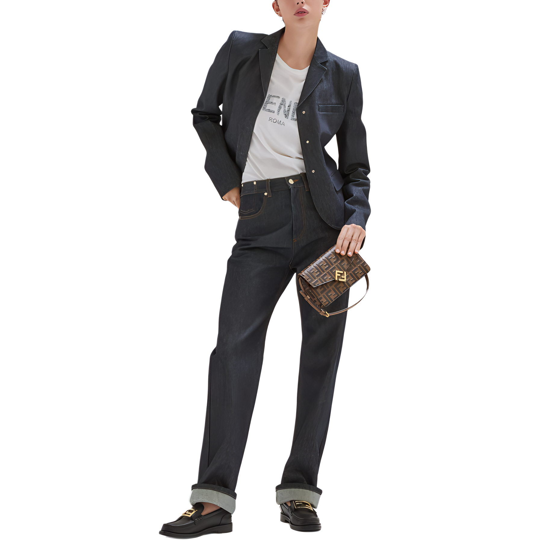 Kaos Pendek FENDI dengan Motif Gambar/Cetak, Cocok untuk Pria dan WanitaF-08